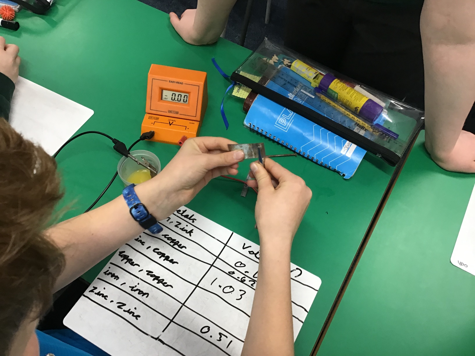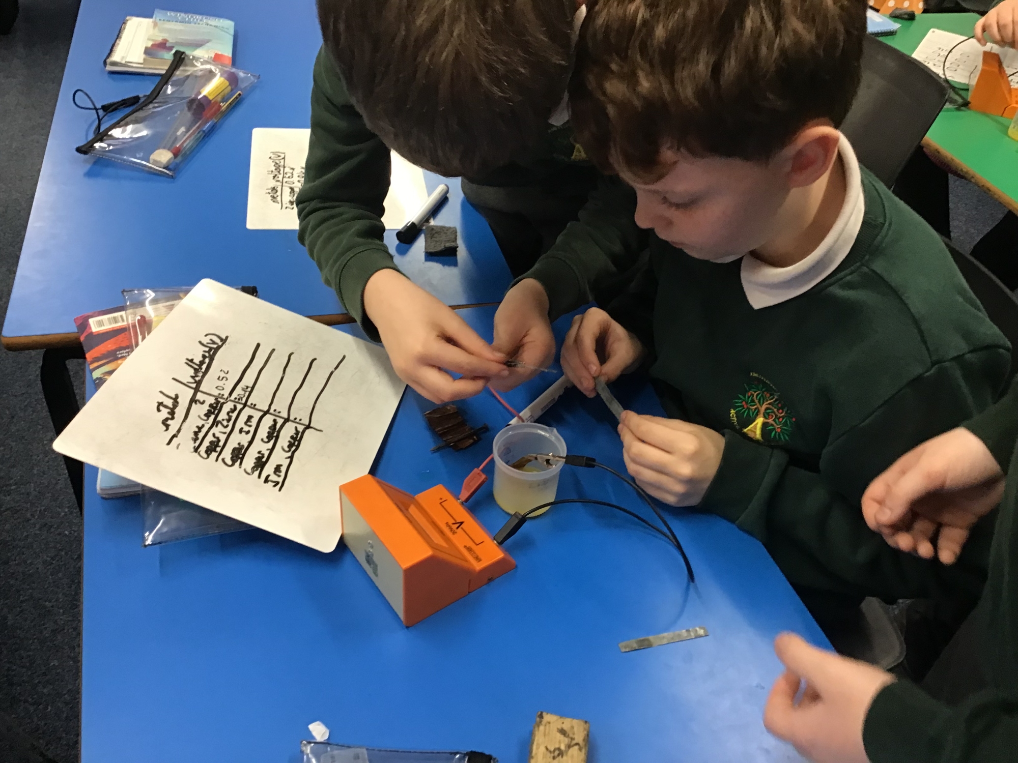 During our Science Van visit we explored static electricity and also created our own batteries and then tested them out! We needed to use different combinations of metals (zinc, copper and iron) to see which is the best combination.